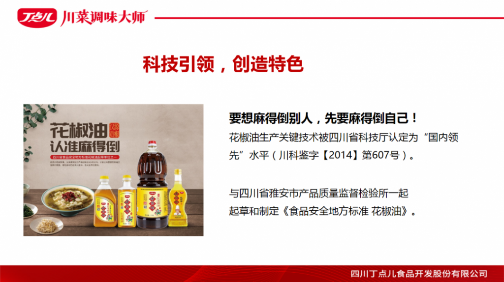 ? ? ? 以“豐富生活點(diǎn)點(diǎn)滋味”為理念,丁點(diǎn)兒股份致力于推動(dòng)川菜調(diào)味標(biāo)準(zhǔn)化、川菜菜品工業(yè)化的發(fā)展,為餐飲客戶提供安全、便捷的調(diào)味標(biāo)準(zhǔn)化產(chǎn)品,簡(jiǎn)化川菜烹飪流程,讓川菜烹調(diào)變簡(jiǎn)單!