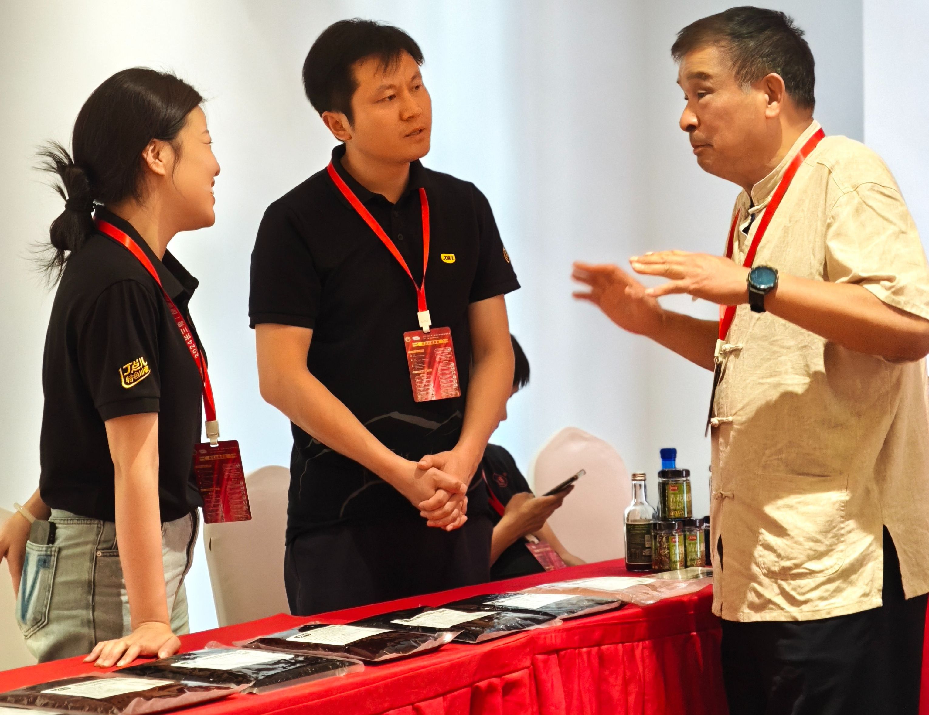 在山東(樂陵)調味品博覽會丁點兒展位現(xiàn)場,丁點兒食品任康董事長親自接待了中國食品土畜進出口商會會長曹德榮先生,并詳細分享了丁點兒藤椒油、麻得倒純萃花椒油等產品的特色與亮點。曹德榮先生對丁點兒高品質特色川調產品表示了高度肯定,并希望雙方能夠緊密合作,共同推動調味品行業(yè)高質量發(fā)展。