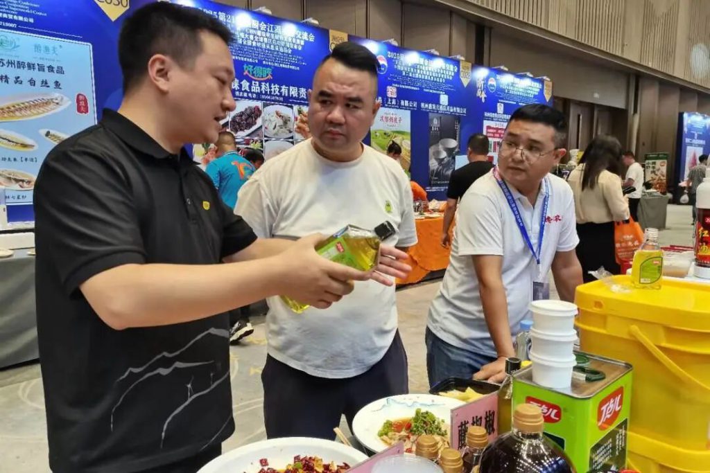展臺(tái)前,人流如織,眾多餐飲連鎖企業(yè)負(fù)責(zé)人、廚師長(zhǎng)及行業(yè)專家駐足咨詢、品鑒、交流。丁點(diǎn)兒菜品研發(fā)工程師用泡椒醬、椒麻雞汁、川味辣鹵等現(xiàn)場(chǎng)烹飪制作了魚(yú)香脆皮茄子、藤椒椒麻雞、川味辣鹵翅尖等特色菜品風(fēng)味獨(dú)特、味型穩(wěn)定,贏得了現(xiàn)場(chǎng)嘉賓的一致好評(píng),許多客戶現(xiàn)場(chǎng)即達(dá)成了深入合作意向。