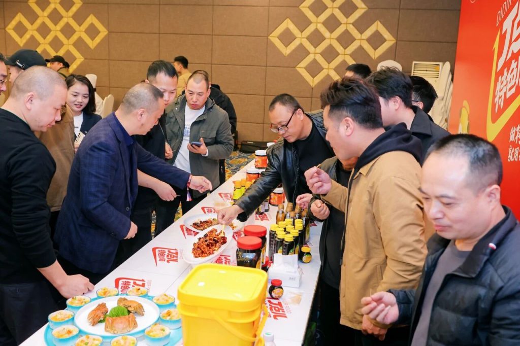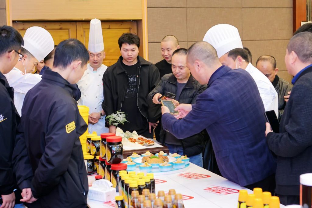 嘉賓們一邊品鑒菜肴,一邊與丁點兒工作人員熱烈交流,紛紛對丁點兒高品質(zhì)特色川調(diào)產(chǎn)品表現(xiàn)出濃厚興趣,并現(xiàn)場達成合作。有廚師分享到:丁點兒的干鍋醬層次感很豐富,味道濃郁,省去了自己調(diào)味的麻煩,直接提升出菜效率!
