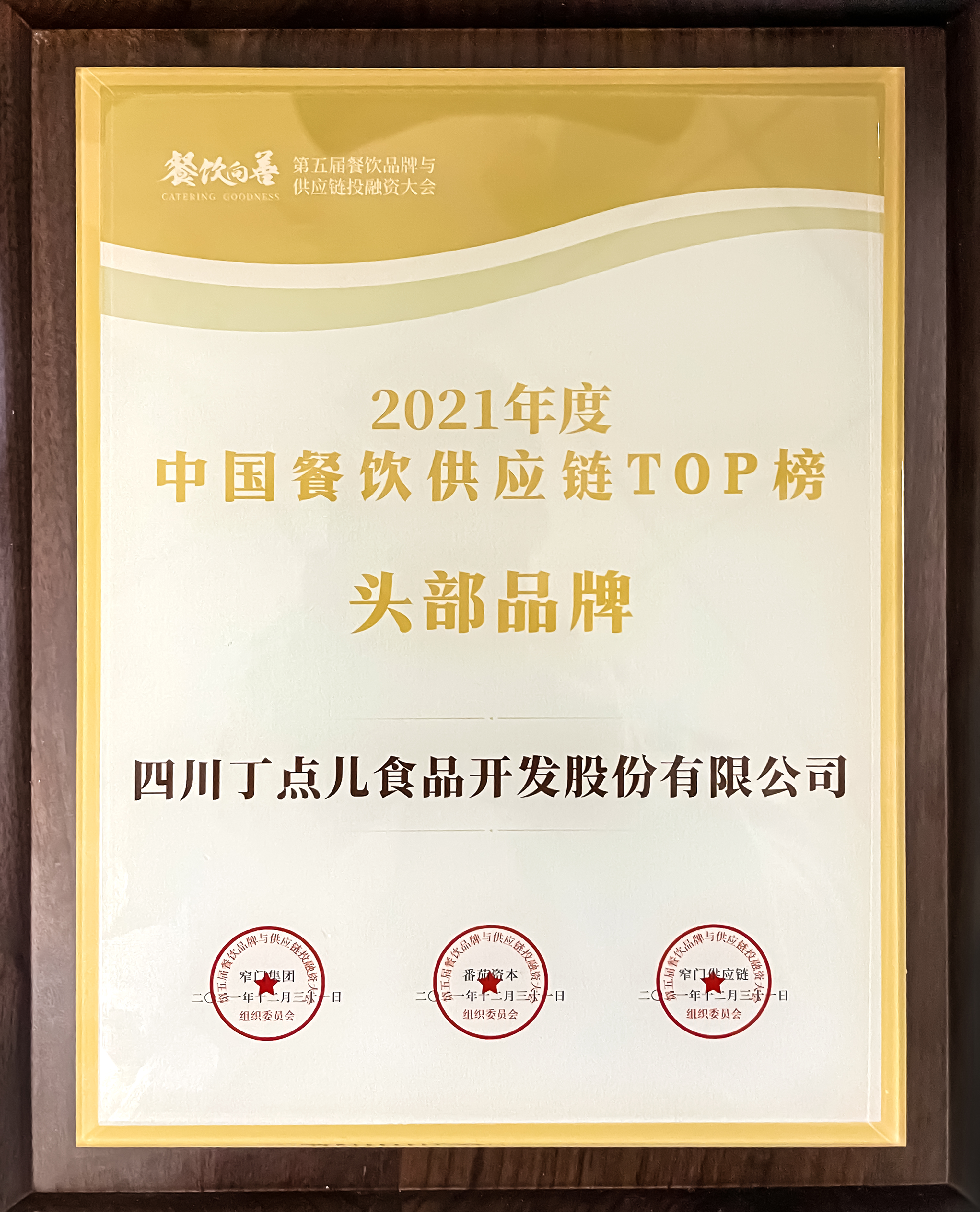 丁點(diǎn)兒股份榮獲“中國(guó)餐飲供應(yīng)鏈TOP榜頭部品牌”稱號(hào)