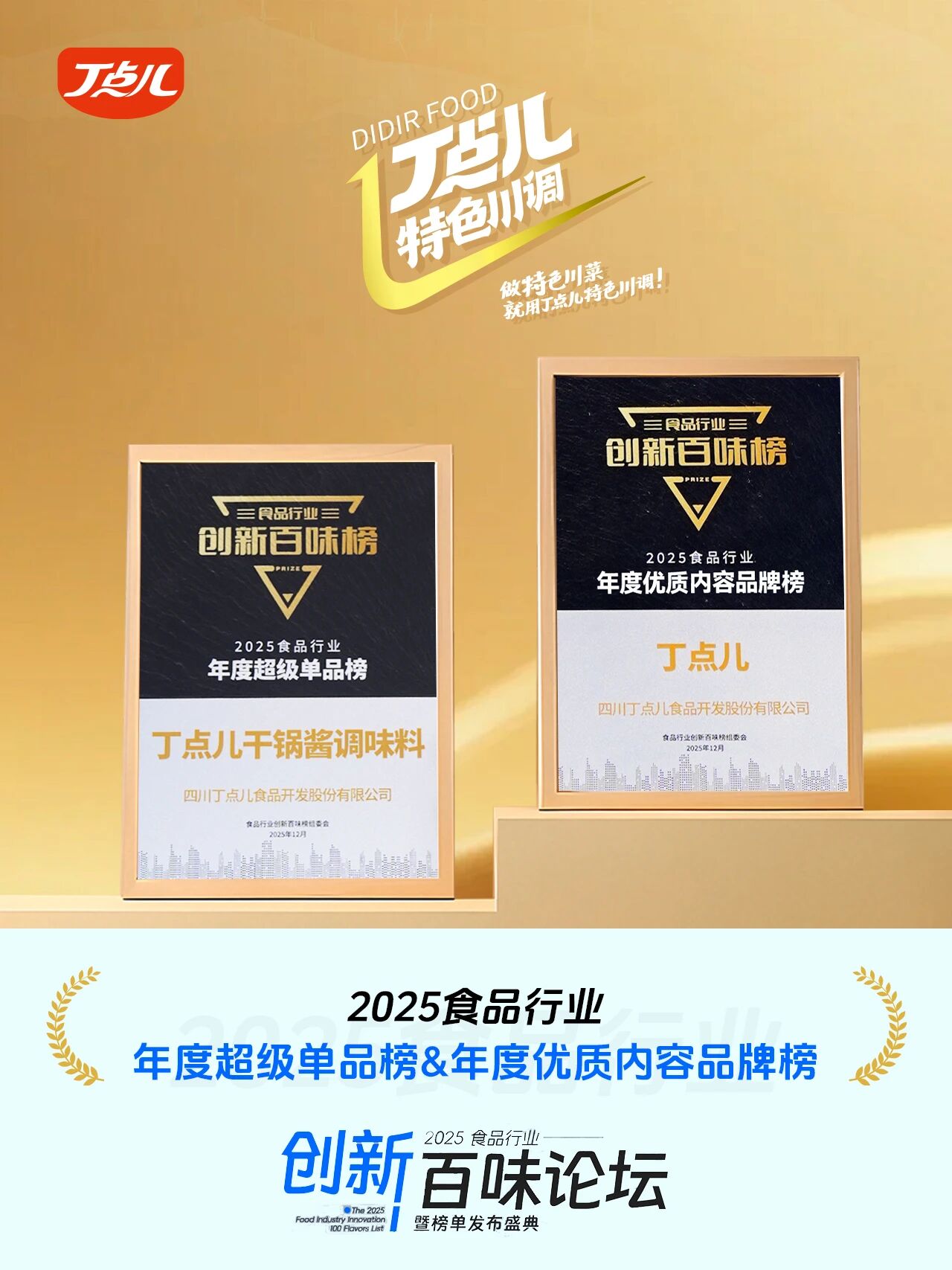 公司先后被授予“四川省農(nóng)業(yè)產(chǎn)業(yè)化重點(diǎn)龍頭企業(yè)”、“四川省企業(yè)技術(shù)中心”、“中國(guó)國(guó)際調(diào)味品及食品配料博覽會(huì)金獎(jiǎng)”等40余項(xiàng)榮譽(yù)稱(chēng)號(hào)。公司“丁點(diǎn)兒”牌調(diào)味料榮獲“四川省名牌產(chǎn)品稱(chēng)號(hào)”、“丁點(diǎn)兒”商標(biāo)被認(rèn)定為“四川省著名商標(biāo)”;“麻得倒”牌花椒油多次榮獲“四川省名牌產(chǎn)品稱(chēng)號(hào)”,連續(xù)多年被列入地方名優(yōu)產(chǎn)品推薦目錄,并獲得綠色食品A級(jí)產(chǎn)品認(rèn)定。