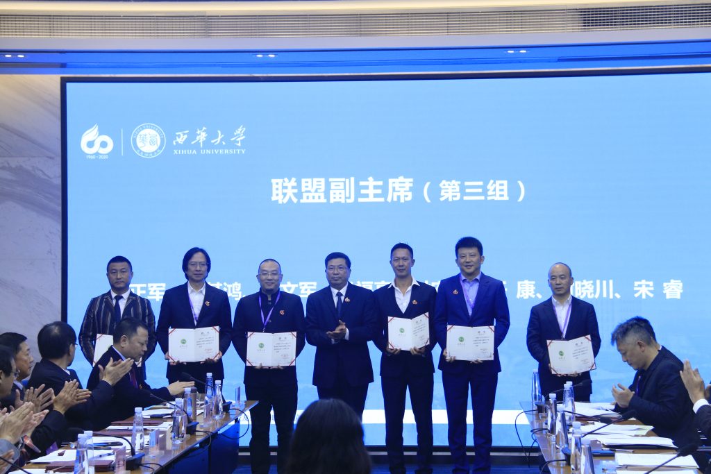 ? ? ? ? 會上,西華大學(xué)組織召開并成立了“成渝地區(qū)雙城經(jīng)濟(jì)圈——校友企業(yè)家聯(lián)盟”,丁點兒股份董事長任康先生被聘為聯(lián)盟副主席。