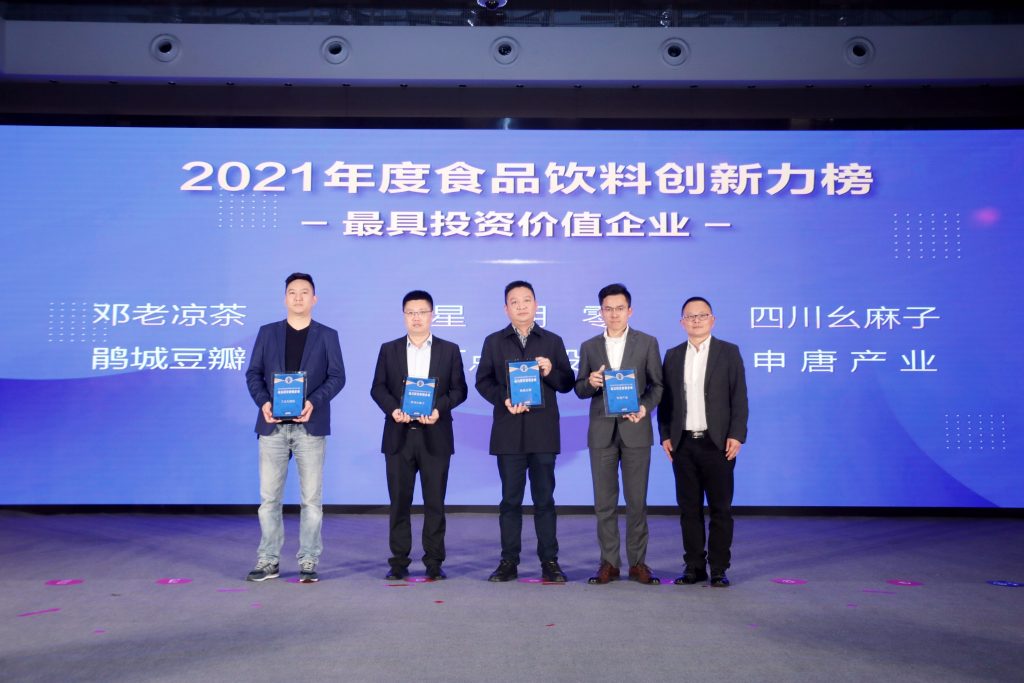 ? ? ? ?會上,每日經(jīng)濟新聞、清華大學(xué)經(jīng)濟管理學(xué)院中國企業(yè)研究中心聯(lián)袂發(fā)布“2021中國食品飲料行業(yè)創(chuàng)新力榜”,助力發(fā)現(xiàn)行業(yè)優(yōu)質(zhì)企業(yè)、品牌和創(chuàng)新力量。丁點兒股份作為川調(diào)行業(yè)優(yōu)秀企業(yè),獲得各位專家評審團的一致認同,入選2021中國食品飲料行業(yè)創(chuàng)新力榜“最具投資價值企業(yè)”。