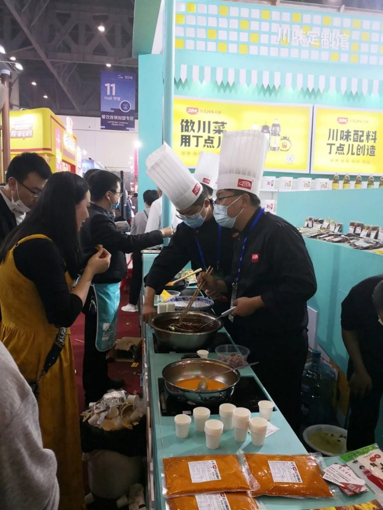 ? ? ?四川丁點兒股份針對流通、餐飲定制和家庭廚房調(diào)味料,現(xiàn)場產(chǎn)品展示突出搶眼、菜品應(yīng)用色香味型俱全。干鍋醬、椒麻雞汁、老壇酸菜魚、金湯酸辣醬、川味辣鹵汁、麻辣(蒜香)小龍蝦、油醋汁、姬松茸菌湯等經(jīng)典川菜調(diào)料明星產(chǎn)品隆重亮相,吸引了大批參會者前來品嘗并達(dá)成合作意向。