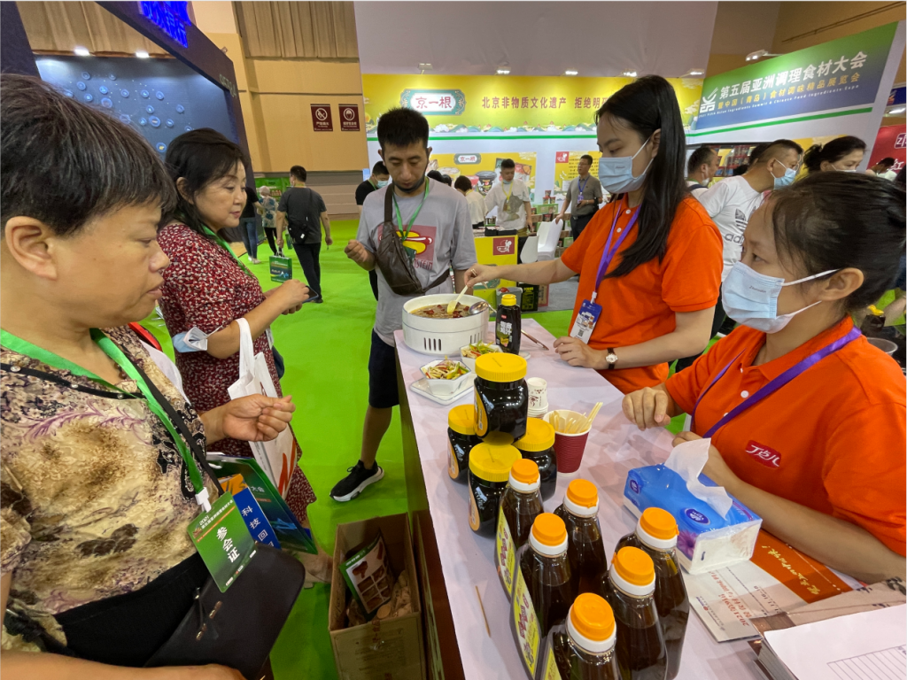 ? ? ? ?現(xiàn)場產(chǎn)品展示突出搶眼、菜品應(yīng)用色香味型俱全,吸引了大批參會者前來品嘗并達成合作意向。
