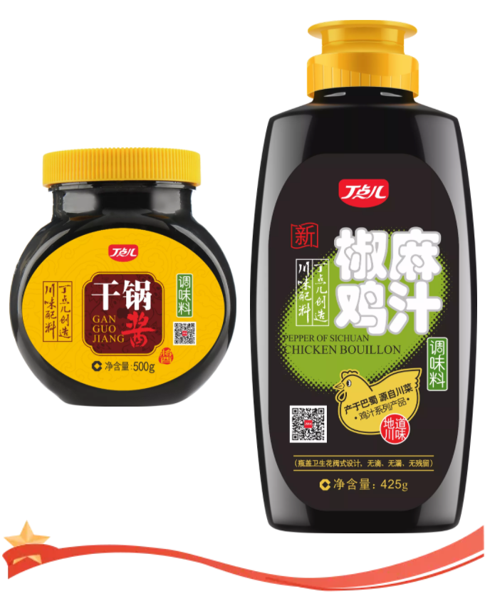 ? ? ? ?“丁點(diǎn)兒”干鍋醬、椒麻雞汁均為丁點(diǎn)兒股份于2011年推出的創(chuàng)新產(chǎn)品,兩款產(chǎn)品的包裝、裝潢都經(jīng)過(guò)丁點(diǎn)兒股份的獨(dú)創(chuàng)性設(shè)計(jì),并獲得了國(guó)家知識(shí)產(chǎn)權(quán)局授予的針對(duì)包裝瓶和標(biāo)貼的外觀設(shè)計(jì)專利。2012年“丁點(diǎn)兒”系列調(diào)味料被四川省人民政府認(rèn)定為四川省名牌產(chǎn)品,“丁點(diǎn)兒”商標(biāo)被認(rèn)定為四川省著名商標(biāo),2017年“丁點(diǎn)兒”干鍋醬和椒麻雞汁雙雙入選《省級(jí)名優(yōu)產(chǎn)品》目錄。