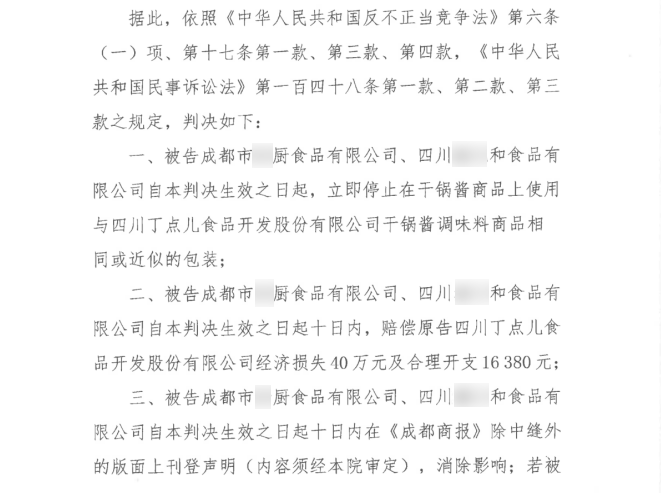 干鍋醬一審民事判決書(shū)內(nèi)容節(jié)選