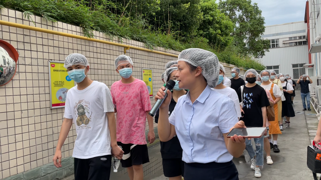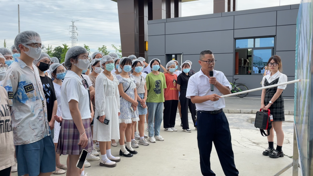 ? ? ? ?稍作休息后,參觀師生一行乘車前往丁點(diǎn)兒股份2廠,由帶隊(duì)老師再次進(jìn)行安全風(fēng)險(xiǎn)強(qiáng)調(diào)后進(jìn)入廠區(qū)參觀交流學(xué)習(xí)。丁點(diǎn)兒股份項(xiàng)目工程管理員王智兵就全廠總體規(guī)劃布局作了簡(jiǎn)要分享。