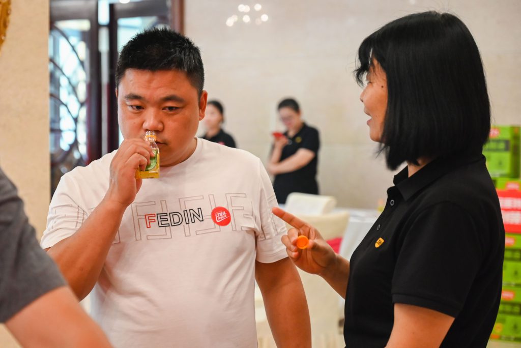 在丁點(diǎn)兒藤椒油、老壇酸菜醬、椒麻雞汁、干鍋醬等的加持下,每道菜品香飄四溢,引得眾人贊不絕口。大家紛紛來(lái)到丁點(diǎn)兒高品質(zhì)特色川調(diào)產(chǎn)品展示區(qū),咨詢了解、溝通合作。