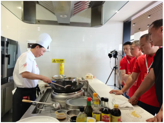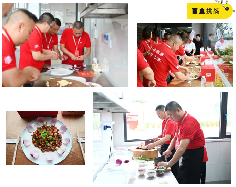 現(xiàn)場,大廚們還以分組抽盲盒食材的形式,現(xiàn)場進(jìn)行菜品制作挑戰(zhàn)。大廚們摩拳擦掌、分工有序,用丁點(diǎn)兒干鍋醬、藤椒油、金湯酸菜醬、椒麻雞汁等產(chǎn)品快速出品了一道道色香味俱全的美味佳肴。