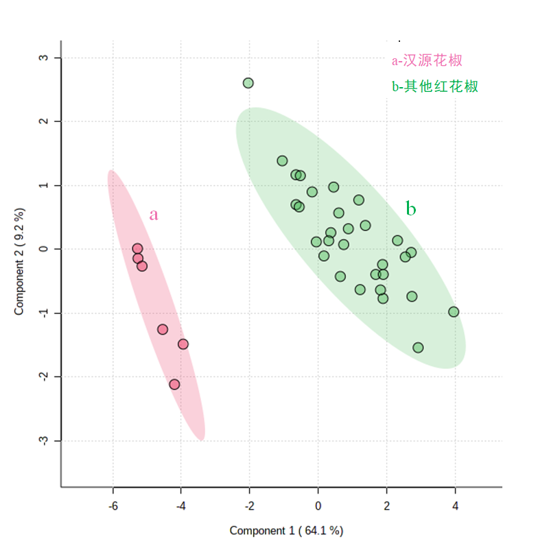 圖4:漢源花椒與其他產(chǎn)地紅花椒鑒別 PLS-DA 得分圖