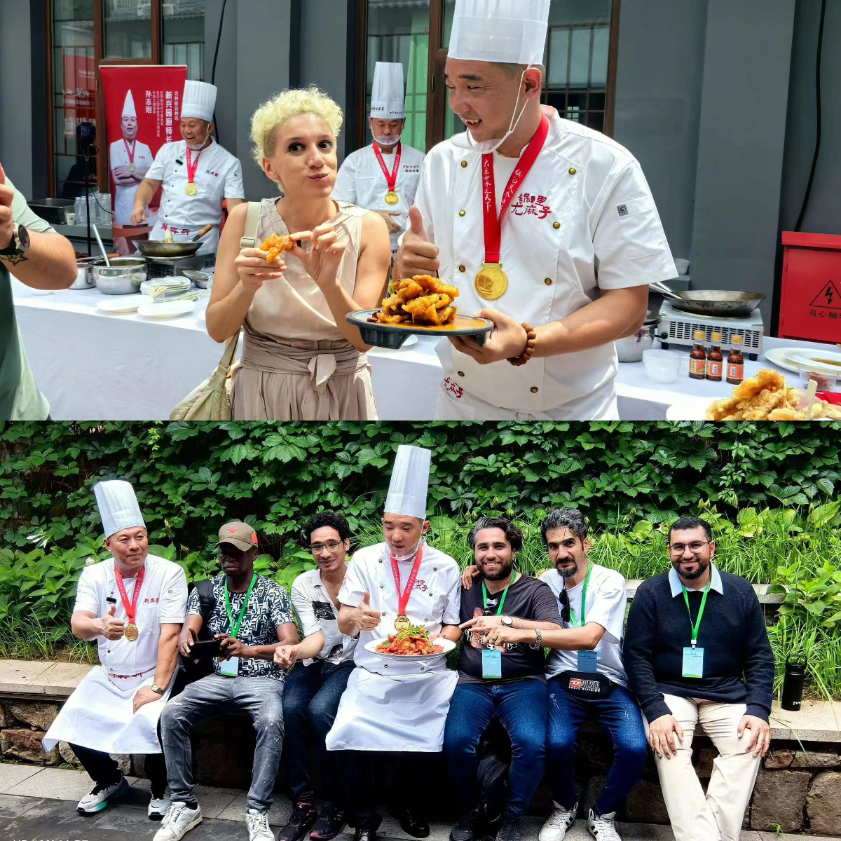 在保留傳統(tǒng)鍋包肉酥脆口感的基礎(chǔ)上,閆正龍大師突破常規(guī),使用丁點兒椒麻雞汁、麻辣雞鮮等高品質(zhì)特色川調(diào)烹制出椒麻鍋包肉和麻辣鍋包肉,為鍋包肉賦予前所未有的麻、辣、鮮、香。兩款鍋包肉既有傳統(tǒng)風(fēng)味的延續(xù),又有現(xiàn)代口味的創(chuàng)新,得到了現(xiàn)場海內(nèi)外嘉賓及游客的如潮好評!