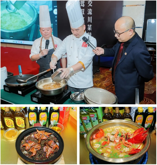活動(dòng)中,廣都國(guó)際酒店行政總廚劉軍、熙蜀印象行政總廚和博、中國(guó)烹飪大師劉全剛用丁點(diǎn)兒青花椒麻辣醬、藤椒油、金湯酸菜醬烹飪了滾式焰火鵪鶉、豆湯五常米淋波龍等菜品,其精湛的廚藝和獨(dú)到的美食見(jiàn)解,為參會(huì)者們帶來(lái)了一場(chǎng)視覺(jué)與味覺(jué)的雙重盛宴。他們不僅傳授了烹飪技巧,更分享了背后的創(chuàng)意思路,讓大家在品味美食的同時(shí),也能創(chuàng)造出屬于自己的獨(dú)特美味。