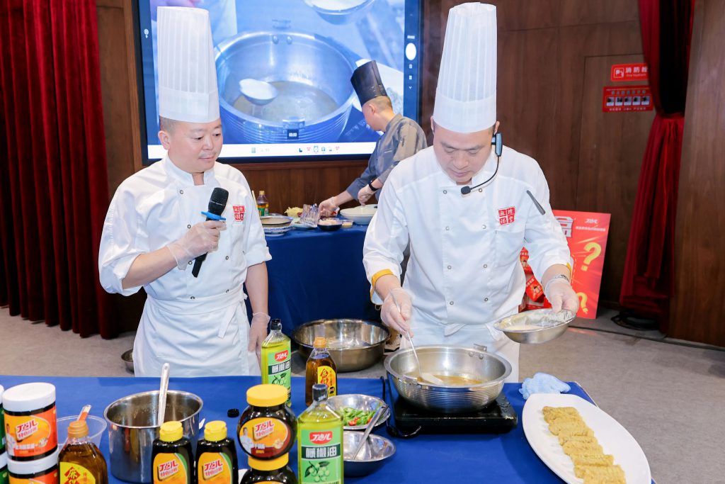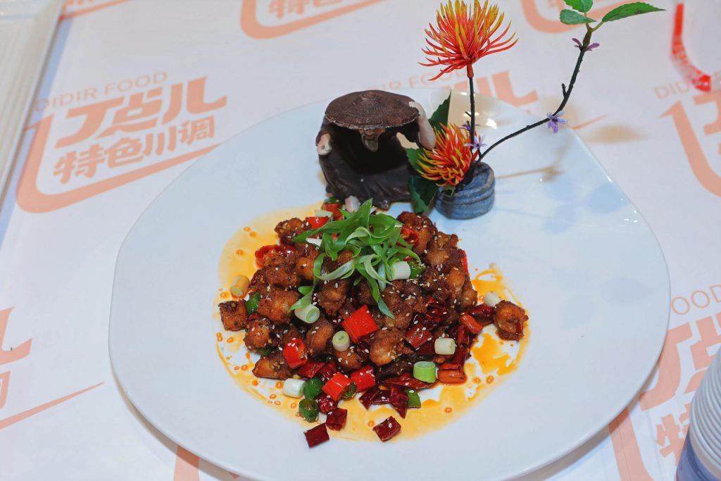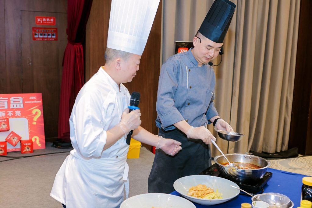 為讓嘉賓更直觀感受丁點兒產(chǎn)品的魅力,丁點兒菜品研發(fā)工程師應用丁點兒干鍋醬、干鍋香、泡椒醬等特色川調(diào)烹制了干鍋椒麻掌中寶、青椒金醬蝦仁等風味菜品供大家品嘗,贏得了嘉賓的一直肯定?!斑@道干鍋椒麻掌中寶,味道濃郁,外酥里嫩,根本吃不夠”“青椒金醬蝦仁清鮮爽口,椒麻十足,好吃!”