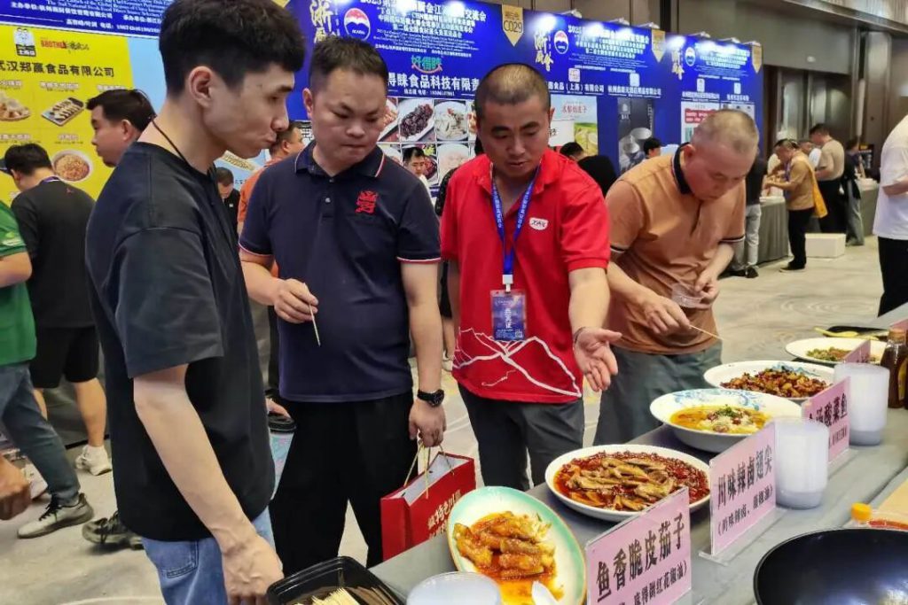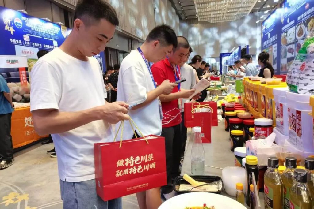 展臺(tái)前,人流如織,眾多餐飲連鎖企業(yè)負(fù)責(zé)人、廚師長(zhǎng)及行業(yè)專家駐足咨詢、品鑒、交流。丁點(diǎn)兒菜品研發(fā)工程師用泡椒醬、椒麻雞汁、川味辣鹵等現(xiàn)場(chǎng)烹飪制作了魚(yú)香脆皮茄子、藤椒椒麻雞、川味辣鹵翅尖等特色菜品風(fēng)味獨(dú)特、味型穩(wěn)定,贏得了現(xiàn)場(chǎng)嘉賓的一致好評(píng),許多客戶現(xiàn)場(chǎng)即達(dá)成了深入合作意向。